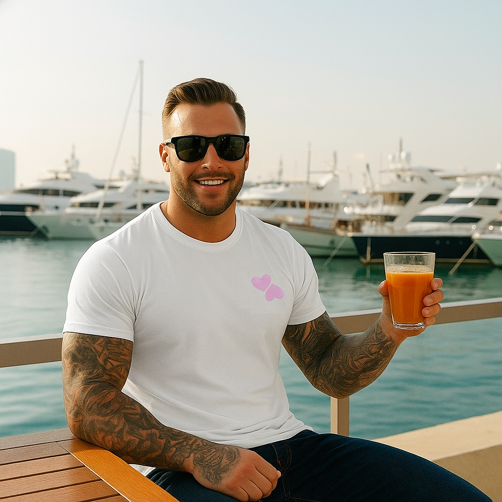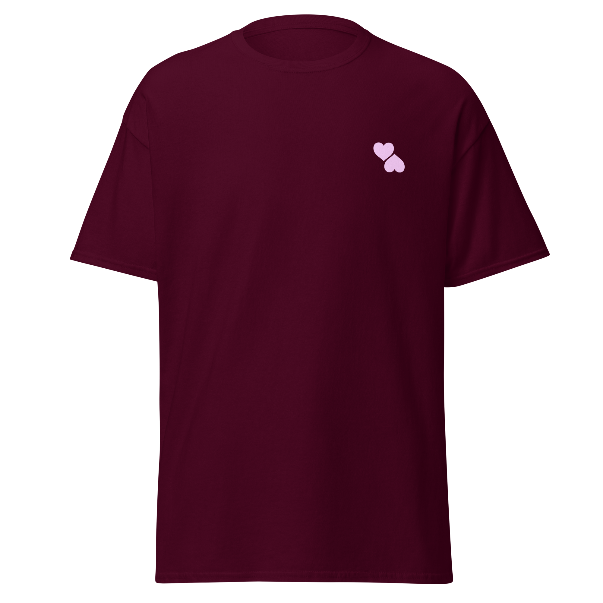 La camiseta Basic de corte regular presenta corazones en rosa palo y en relieve en el pecho,  emblema y sello distintivo de la firma. Estos detalles  confieren a la camiseta un estilo sencillo y elegante a cualquier hora del día.
