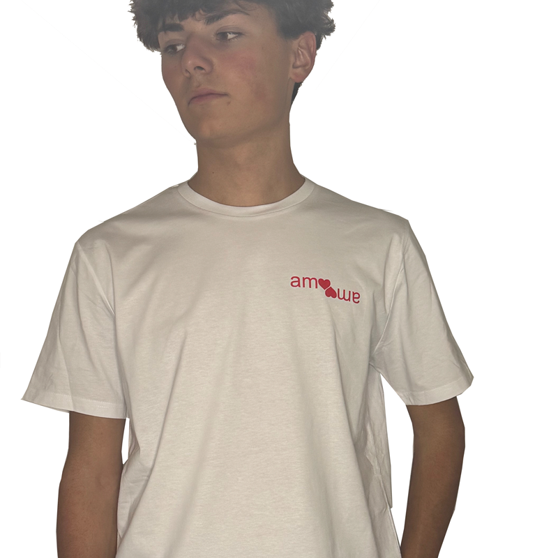 Detalle delantero: logo amoamo en pecho corazón.