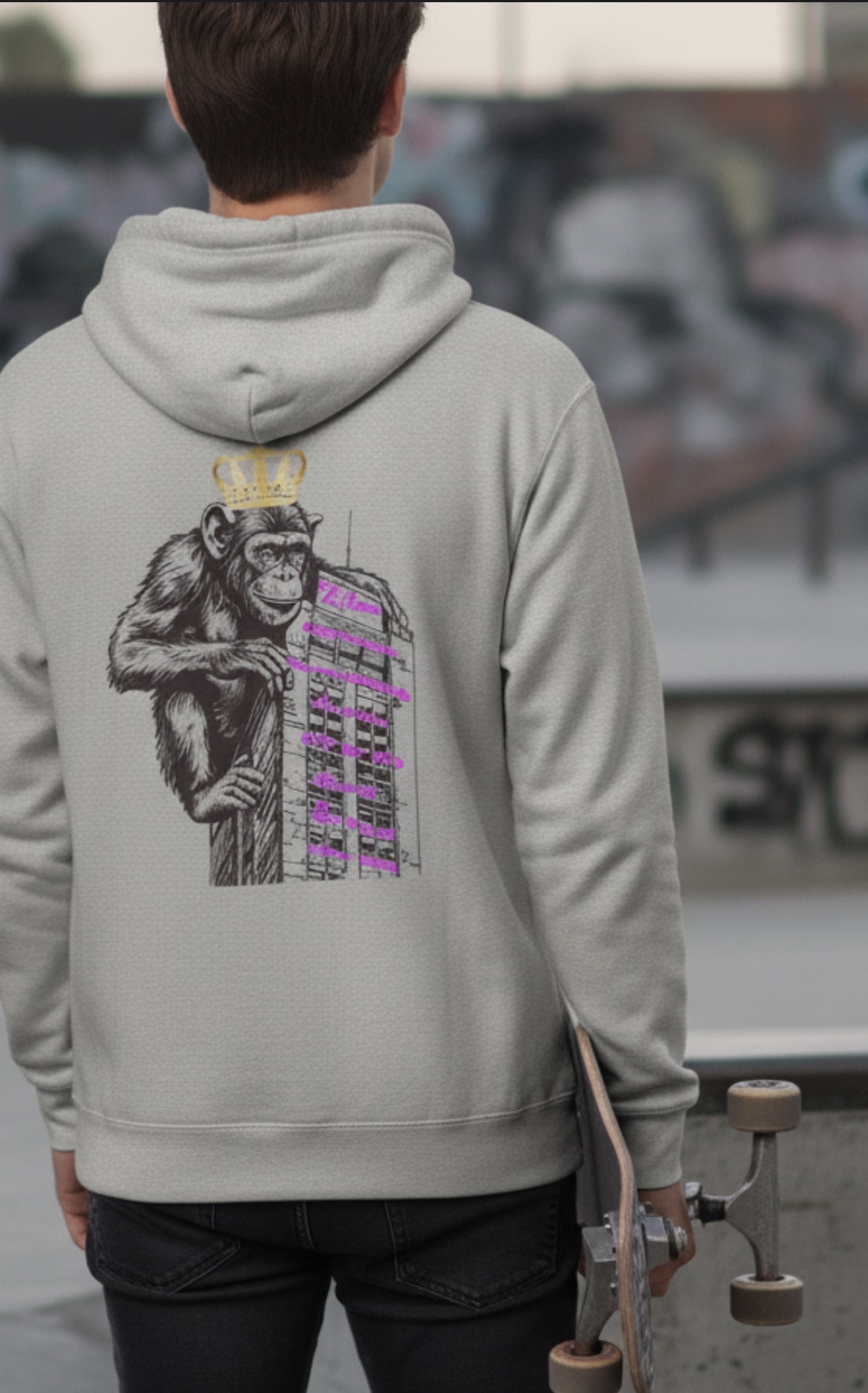 La sudadera ignorantes lleva impreso en la espalda un mono coronado llegando a la cima y con el texto “when ignorance wear a crown, disaster sit on the thorne. Be bright above them”. Representa satíricamente a todas esas personas que están en la cima sin tener que estarlo, y que tu estas por encima de todas ellas, pensada para quienes sienten con intensidad y no esconden lo que llevan dentro.
